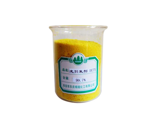 化学名称:2,4-Diethylthioxanthone CAS No.:82799-44-8 外观:淡黄色粉未 含量:98.5﹪Min(HPLC) 熔点:70~75℃ 挥发分:0.1﹪Max 应用:光引发剂-DETX是一种高效光固化引发剂,吸收紫外光可引发化学反应,适用于不饱和聚酯、丙烯酸单体等组成的光固化材料中。其优点在于与有机溶剂有良好的互溶性,可用于无色或有颜色的涂料中,亦可用于印刷油墨、木质家具、装饰漆及胶粘剂等。包装:20 kg纸箱
